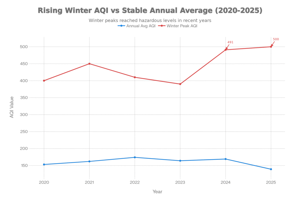 The chart above exposes a critical truth: While the government claims “annual averages” are improving (a convenient cherry-picked stat), the peak toxicity during winter remains lethal. We are not breathing better; we are just suffocating differently.